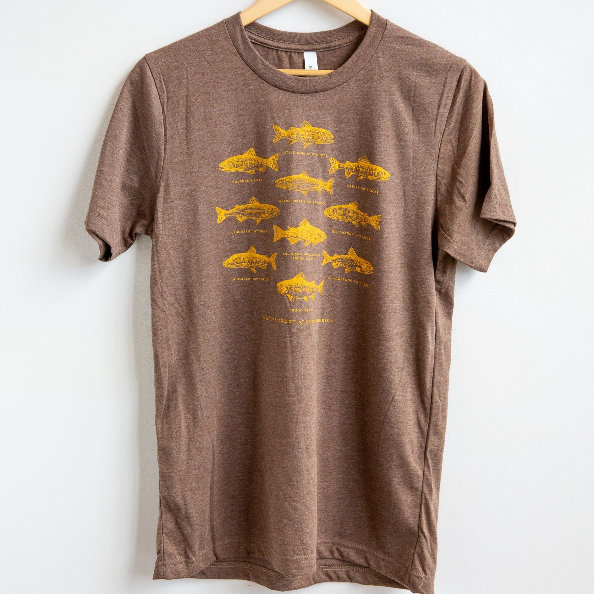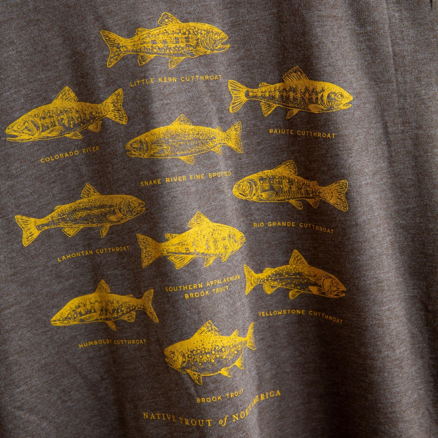 The latest in our collaborative series with Virginia natural history illustrator, The Wild Wander, this design features an illustrated guide to different varieties of trout in North America.