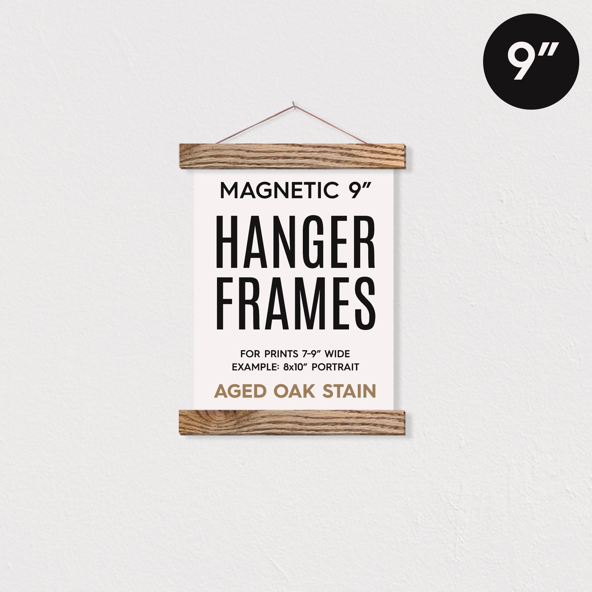 The frame set includes 4 sticks, 2 clamping the top of paper and two clamping the bottom. Neodymium magnets are embedded, keeping the art damage free and allowing you to change out the art at any time! The frame set comes with suede hanger attached.