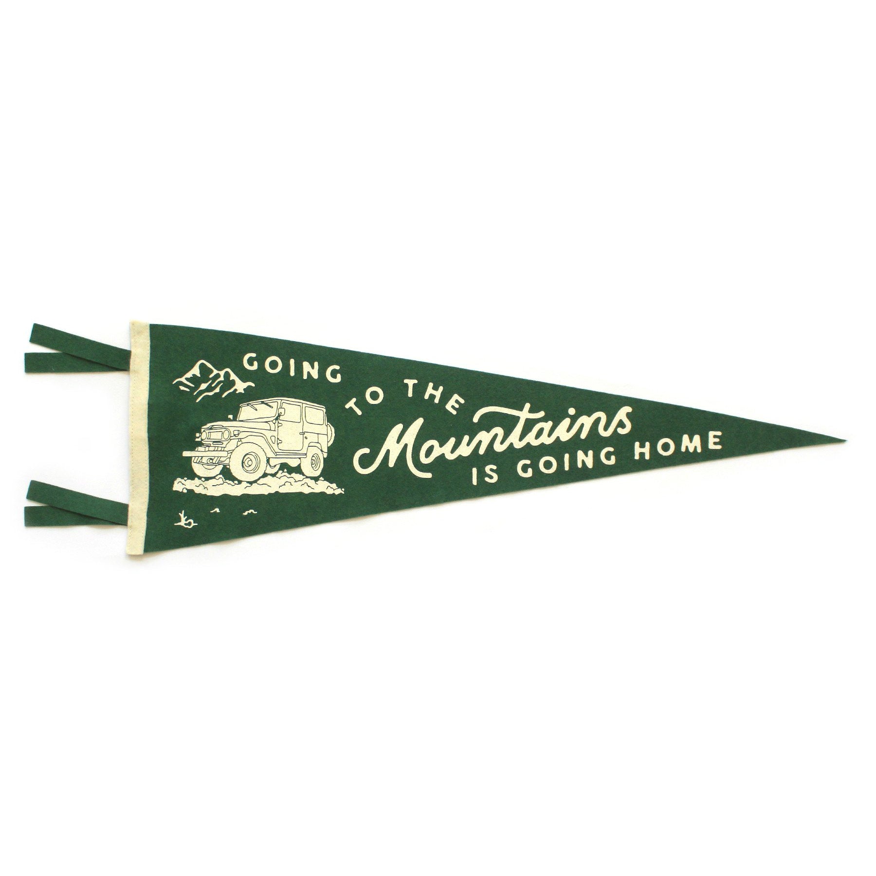 This "Going to the Mountains is Going Home" wool felt pennant from Oxford Pennant takes inspiration from a quote by environmentalist, John Muir. Perfect for explorers and lovers of the outdoors.