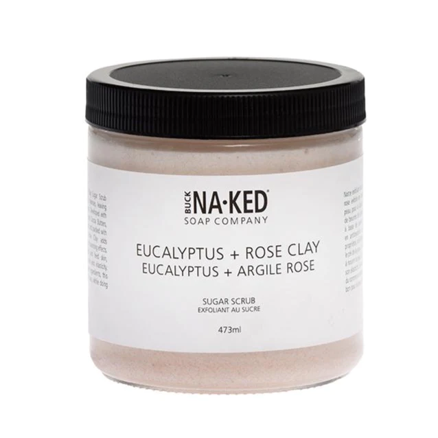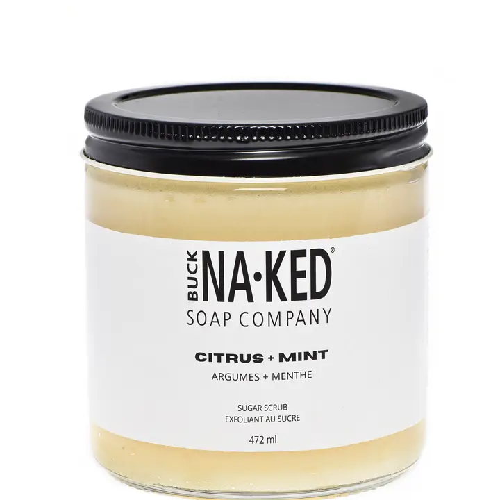 Buck Naked's Sugar Scrub gently exfoliates while it cleanses, leaving your skin silky and smooth. Developed with rich, moisturizing Shea and Cocoa Butters, this formula is soap based and packed with vitamins, antioxidants. Formulated with both white and brown sugars as well as a blend of essential oils, this scrub helps cleans, exfoliate and feed skin. Formulated with fair trade ingredients, this scrub does good for your skin, while doing good for our world.