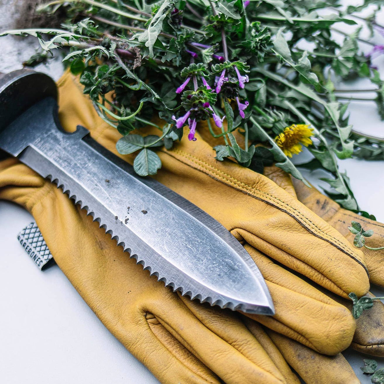Make quick, painless work of prickly plants, rough soil, and dry bark, and grasp wooden tool handles with ease. Barebones' re-creation of the classic work glove means maximum comfort, outdoor versatility, and quality protection. The keystone thumb stitch improves dexterity while the shirred elastic back keeps gloves in place. Premium grain cowhide is soft, warm, and breathable. These gloves are handmade in Pakistan by Pakistani women in their homes.