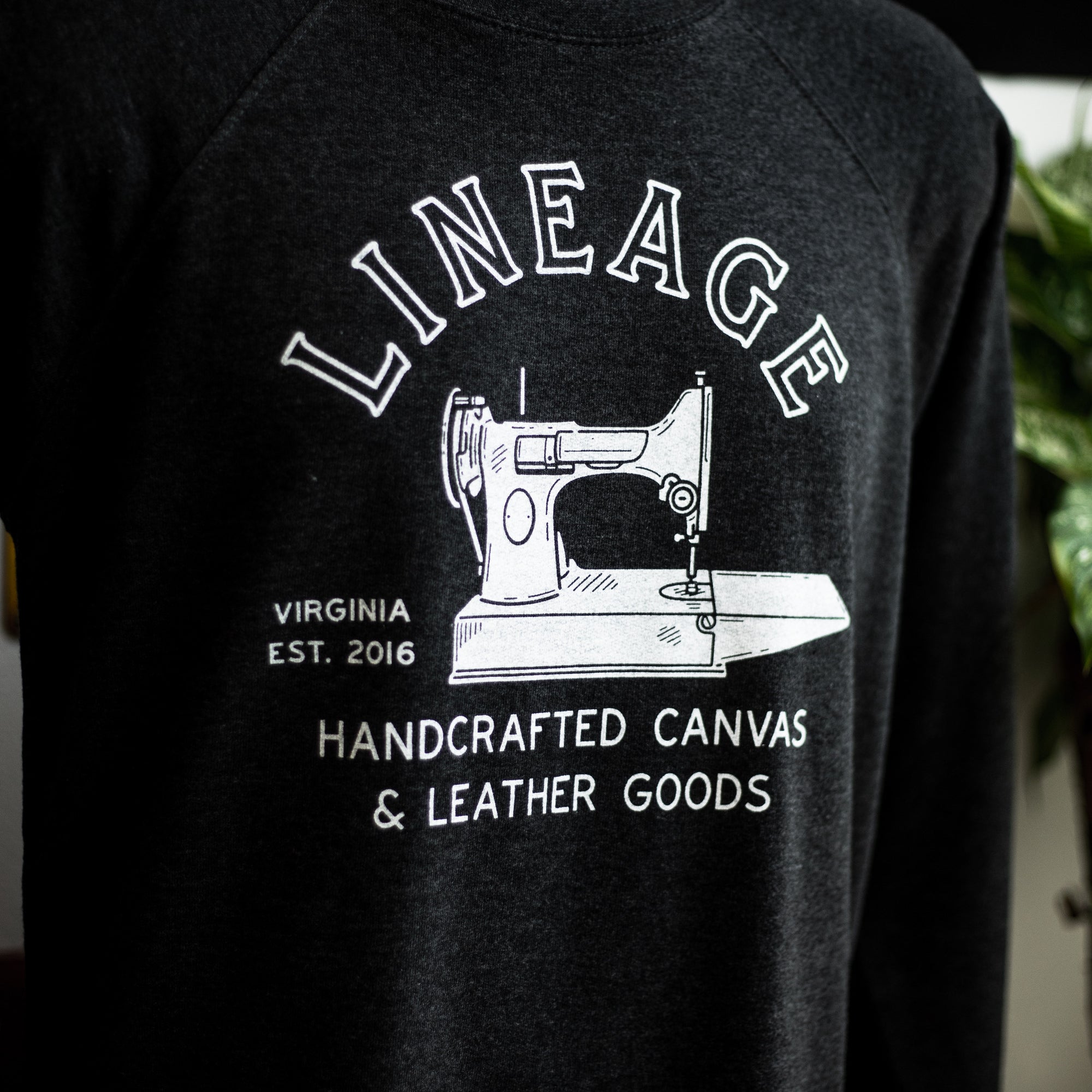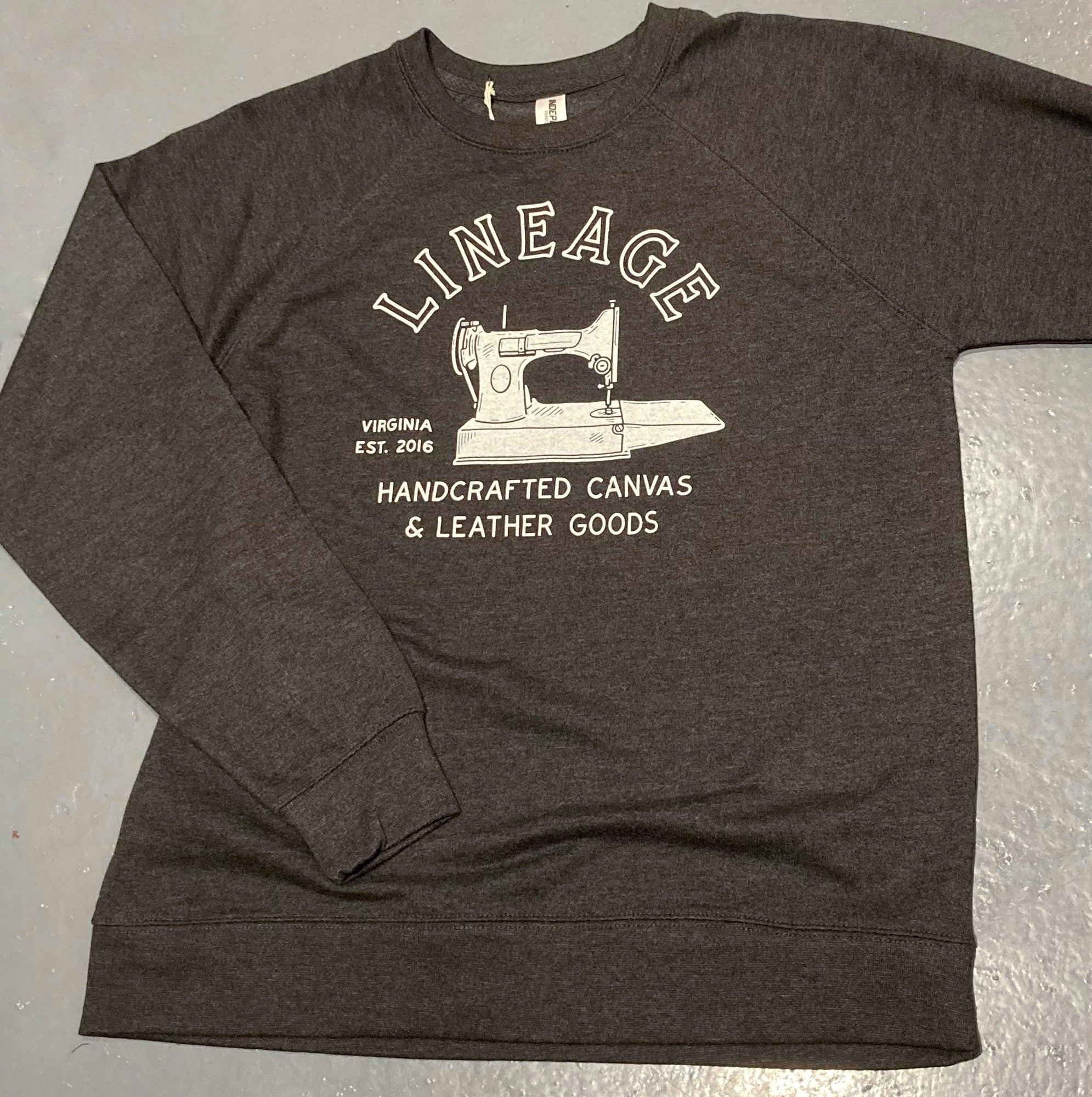 Printed with white ink on Dark Heather poly/cotton blend unisex crewneck sweatshirt.