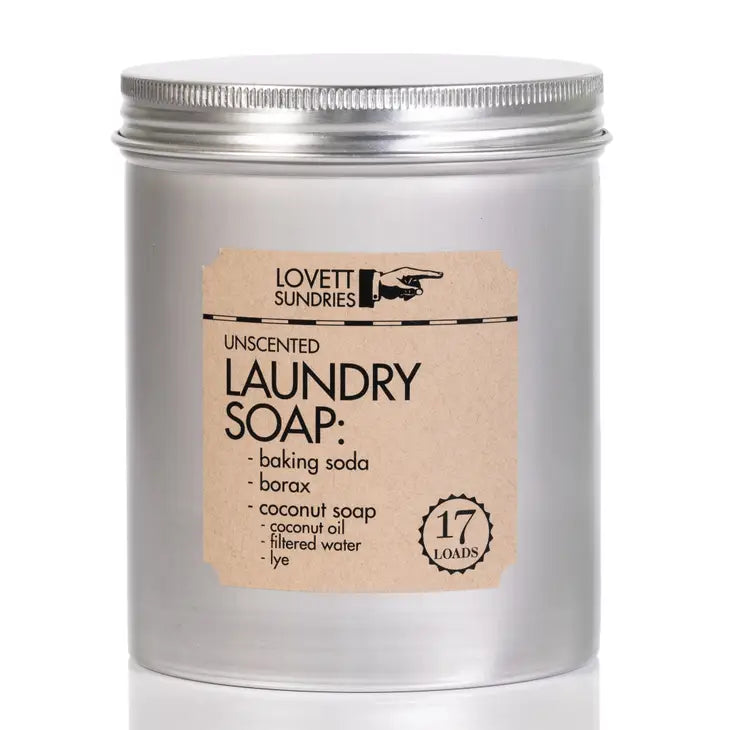 The main ingredient in our laundry soap is ... soap. We use handmade coconut soap flakes and borax as our base. It’s unscented and easy on your clothes, and they come out smelling fresh and clean, not like potpourri.