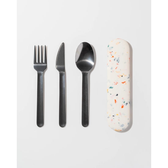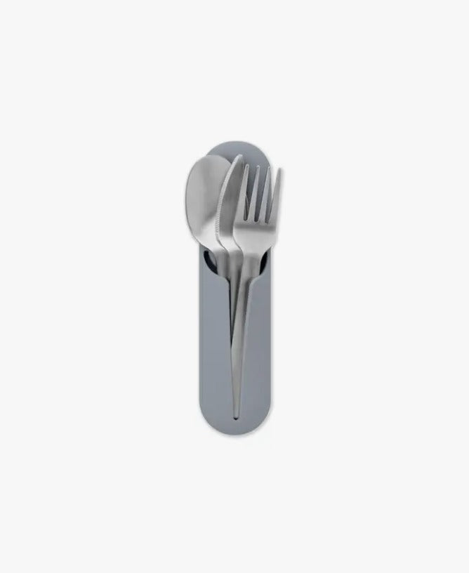- Adult-sized utensils fit in the silicone carrying case to keep cutlery clean in your bag