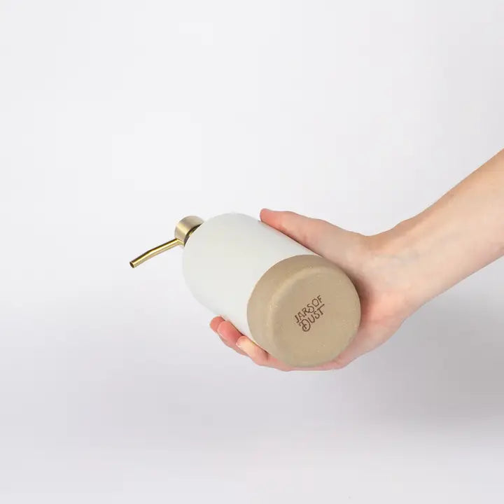 Elevate your everyday with Jars of Dust's Handmade Ceramic Soap Dispensers. Crafted by our team in Virginia Beach, these dispensers liven up routine moments. Made from stoneware clay and our house-made glazes, they're both durable and sustainable. Their versatile design effortlessly complements your style, while user-friendly pumps and easy refilling make life simpler. These dispensers are not just functional; they're a touch of everyday luxury you deserve. Whether for yourself or as a thoughtful gift, bring beautiful design into your life.