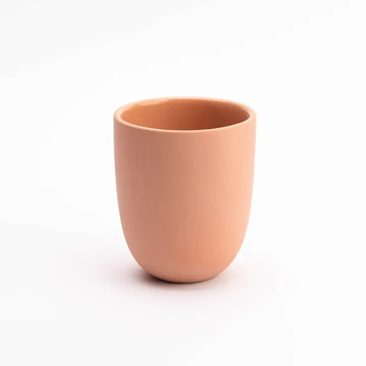 The perfect everyday vessel. Slipcast from a hand-thrown design in an array of colors, with a raw, sanded exterior and interior gloss liner glaze for easy cleaning.