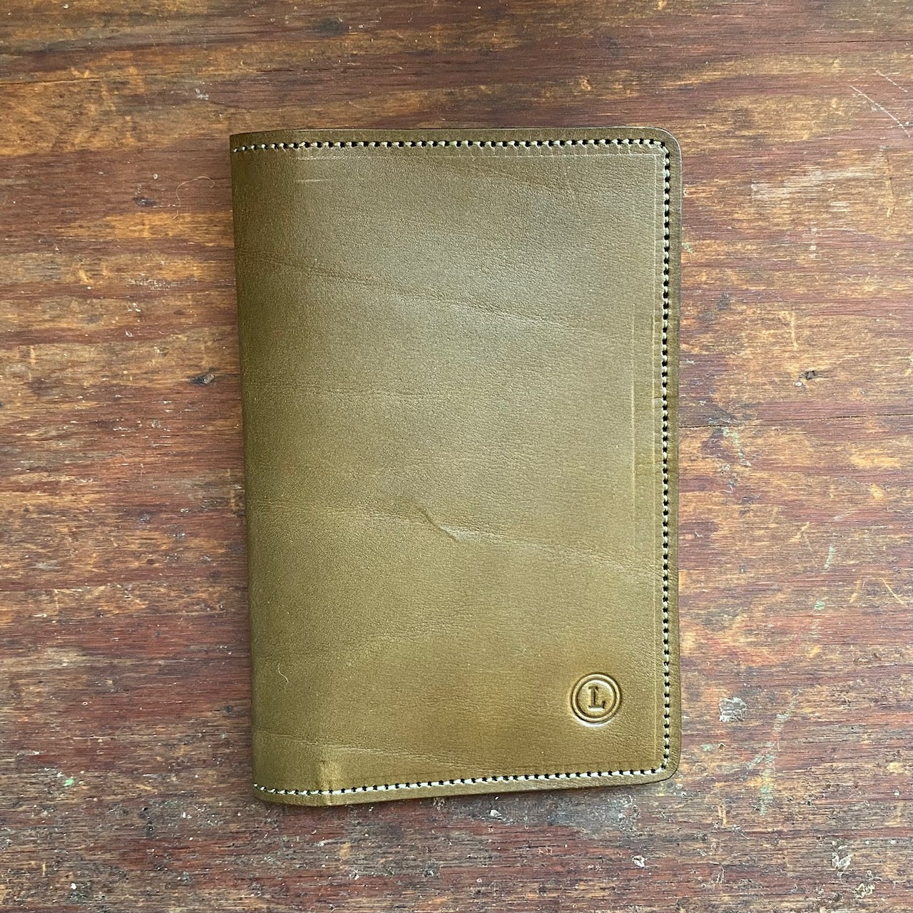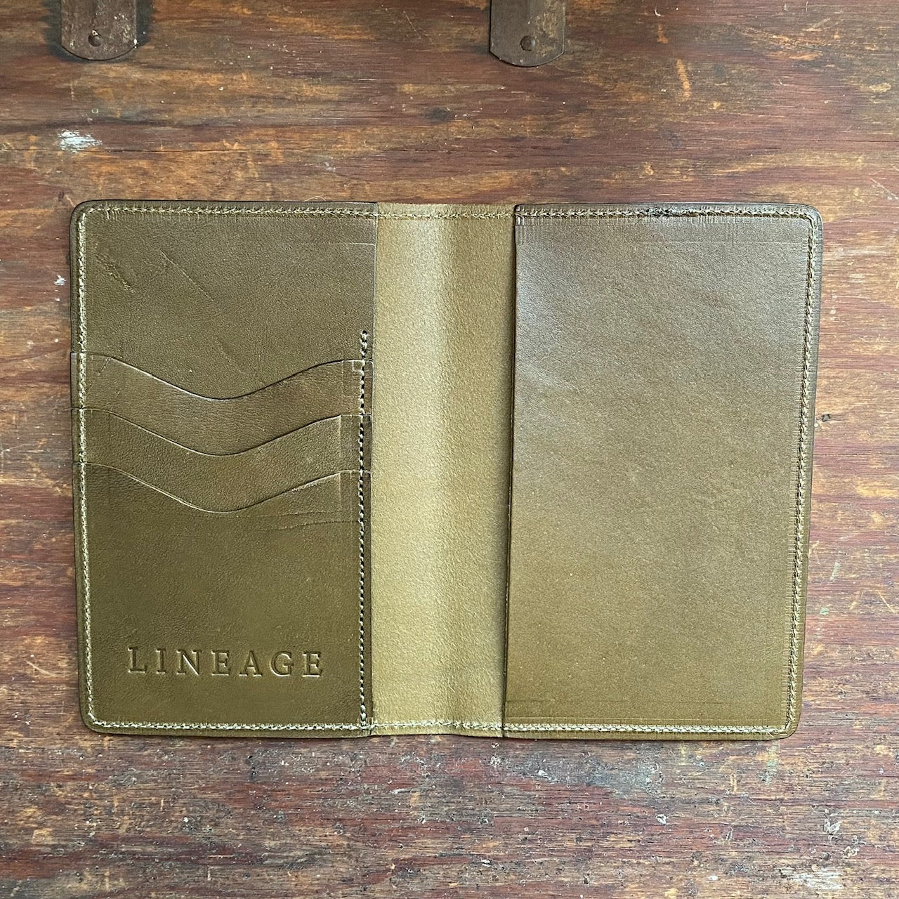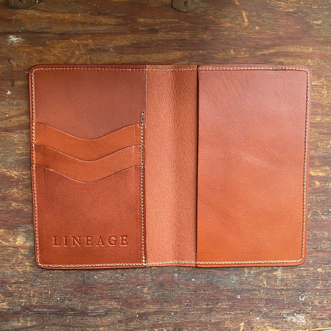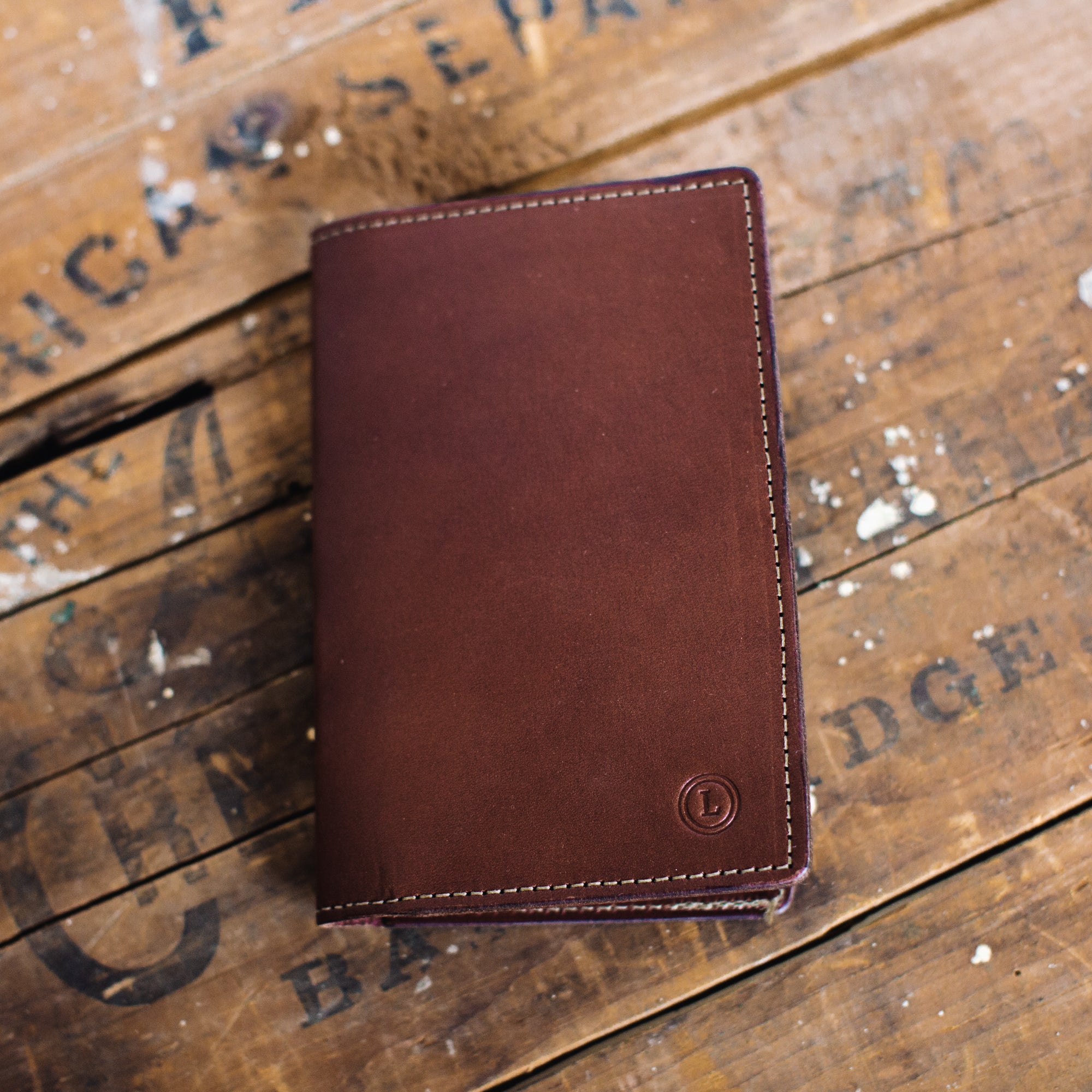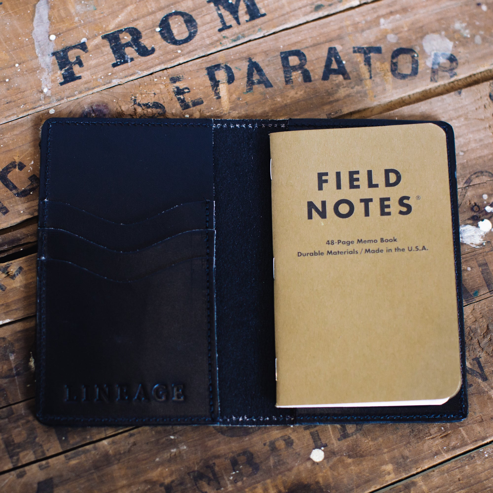 Organize your daily carry essentials with the Wayfarer's Wallet. Three card slots and two wide pockets provide optimal space for carrying a pocket sized notebook (such as Field Notes or Moleskine) or passport, 10+ cards and folded cash. It also has adequate room for storing a pen or pencil inside when folded closed.