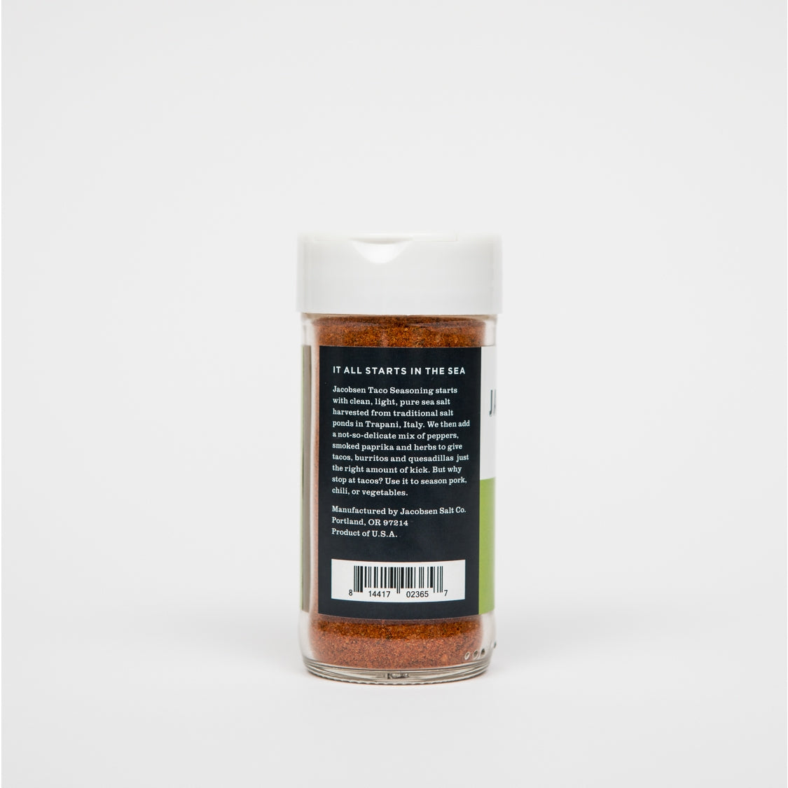 Jacobsen taco seasoning starts with clean, light, pure sea salt harvested from traditional salt ponds in Trapani, Italy. We then add a not-so-delicate mix of peppers, smoked paprika and herbs to give tacos, burritos and quesadillas just the right amount of kick. But why stop at tacos? Use it to season pork, chilli, or vegetables.