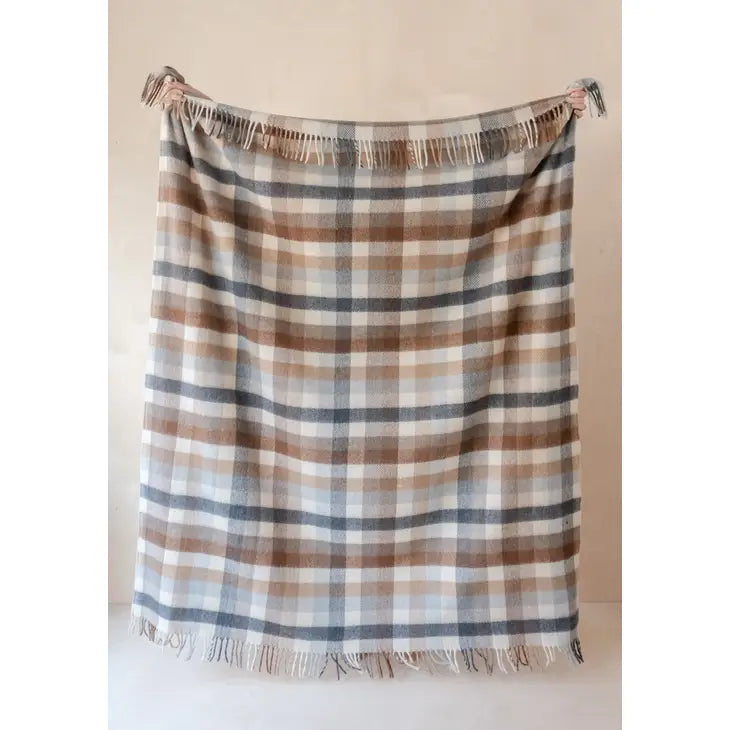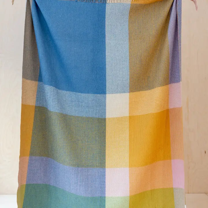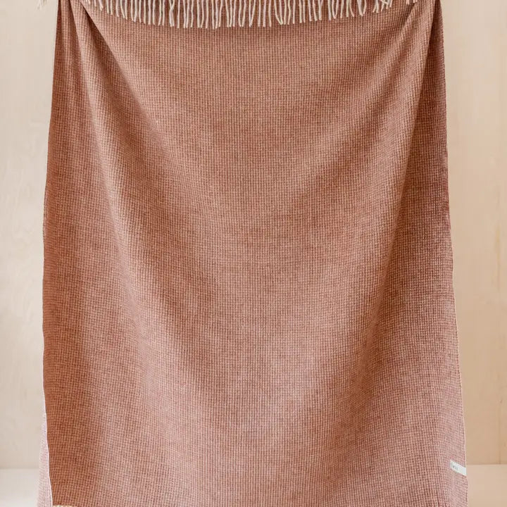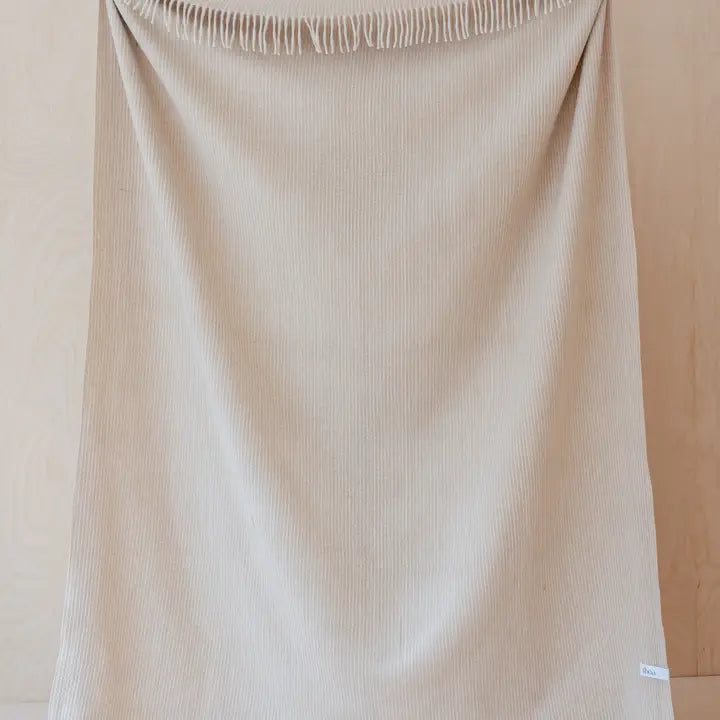 Our recycled wool blend is made from 100% recycled fibers, including 70% recycled wool and the remaining 30% percentage comes from man made recycled fibers that would otherwise end up in landfill, like old water bottles or polyester shirts. Combining the wool threads with these recycled synthetic fibers adds length and strength to the yarn. Woven in a dense twill weave and brushed for texture, recycled wool gives you all the benefits of wool, in a sustainable blanket. Plus, they’re even machine washable.