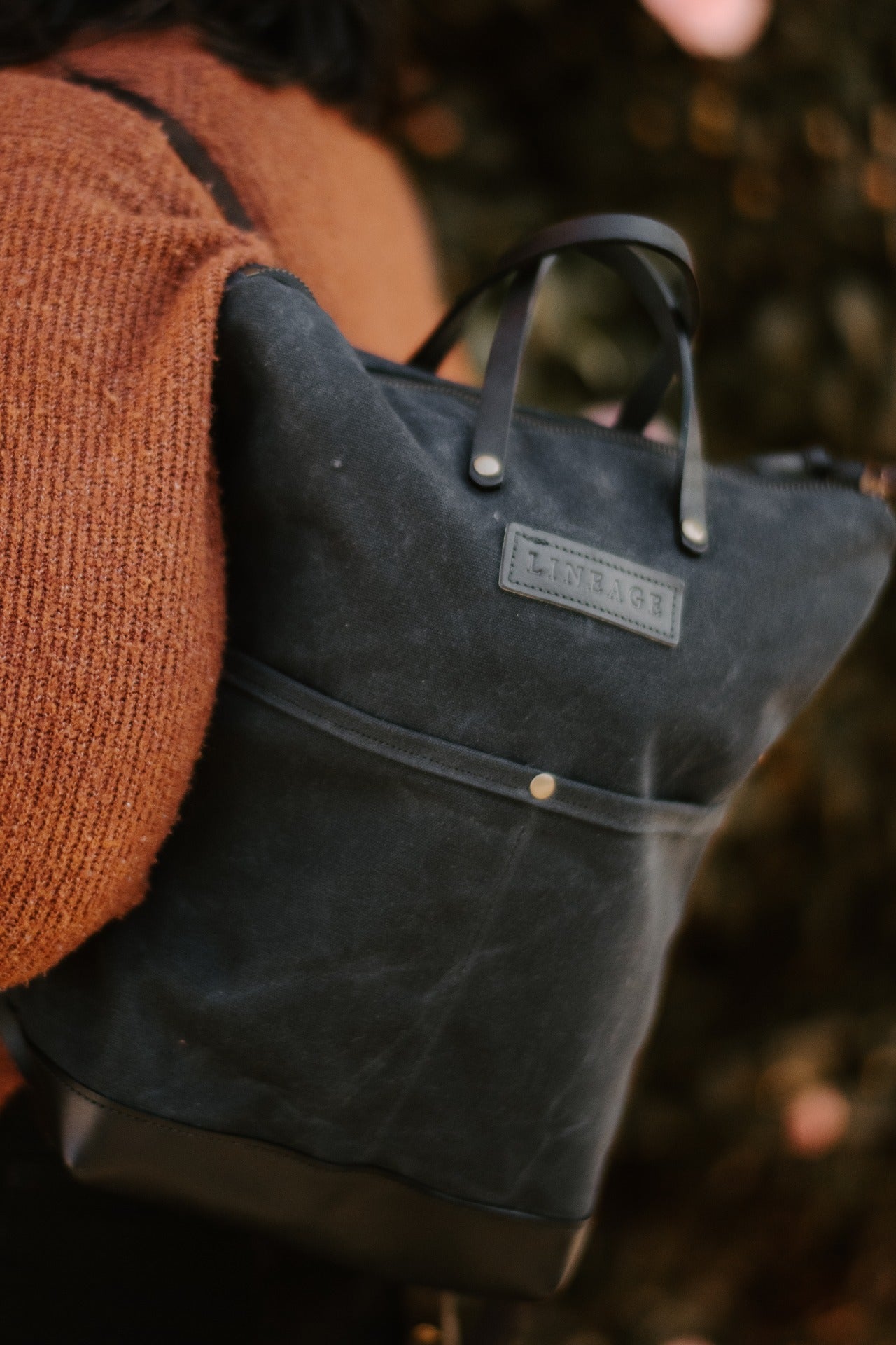 Part of our Midnight collection, the bag features a Black Waxed Canvas exterior and Black English Bridle Leather accents.