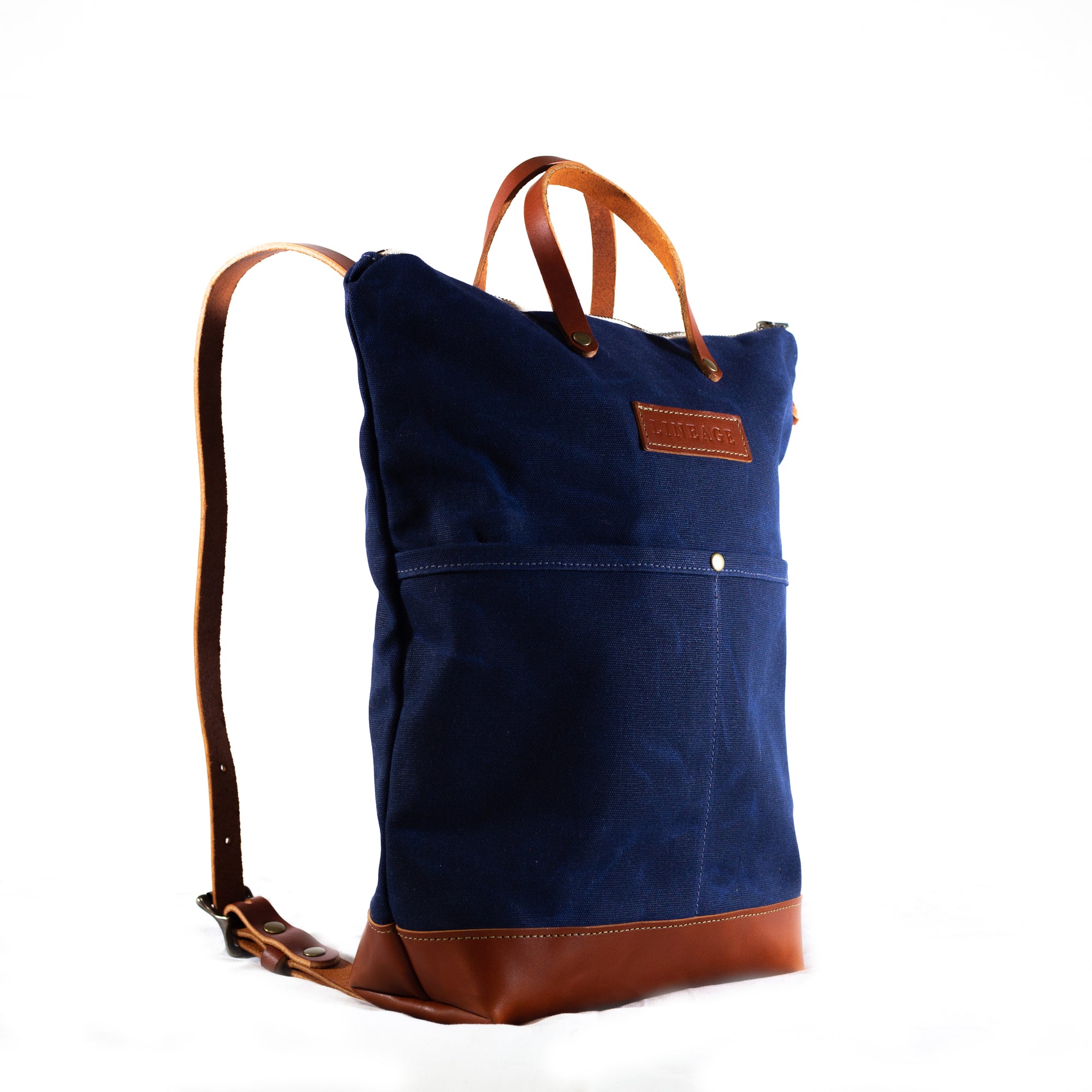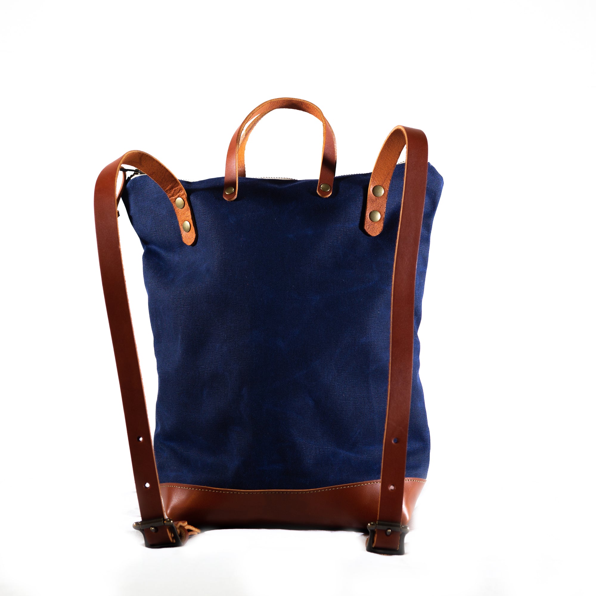 The deluxe, leather bottom version of our York Backpack. A sleek and streamlined backpack with the minimalist in mind. Made with 20 ounce waxed cotton canvas, water-repellent natural canvas lining, chestnut bridle leather straps and bottom panel, and antique brass hardware.